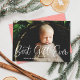 This sweet yet modern holiday birth announcement card features white calligraphy script over a full-bleed single, horizontal photo. The calligraphy script greeting on the front says "Best Gift Ever". This design accommodates a single, horizontal photo on the front of the card. On the reverse side you will find a festive red and white horizontal stripe pattern which can be removed or customized. You can also add another photo or text to the back by selecting "customize design further".