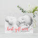 Announce the news of your newborn's birth with this stylish "First Christmas" holiday photo card doubling as a birth announcement. Features the phrase "best gift ever" in a modern chic hand lettered script in red. Your baby's photo is the focal point with the hand lettered artwork in red as an overlay. Add an additional photo and personalized details to the back.