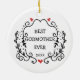 Best Godmother Ever Personalized Line Art Greenery Ceramic Ornament. Personalize with your custom information on both front and back.