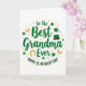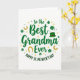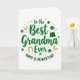 This greeting card features the message “to the Best Grandma Ever” centered in rich emerald green lettering on a bright white background, making the words the main focus right away 💚. Around the text, small shamrocks in different shades of green drift like confetti, with a few four-leaf clovers tucked in as little lucky surprises ☘️. Gold horseshoes sit near the wording like gentle frames, adding a cozy, treasured feel that suits someone you adore. Tiny yellow starbursts sparkle in the open white space, giving the scene a light, celebratory lift without crowding the design. In the upper right corner, a green leprechaun hat with a gold buckle tilts at an angle, as if it’s been set down mid-laugh. The phrase “HAPPY ST. PATRICK’S DAY” curves along the lower area in green, visually anchoring the page beneath the main line. The overall layout keeps the center clear for the greeting while the icons circle it in a friendly, affectionate ring. The hat stays perched near the top right, with scattered clovers and gold accents leading your eye back to the green text in the middle.