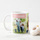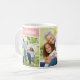 A cheerful photo coffee mug with a pink banner reading Best Grandma, three family photos, and a We Love You message with editable grandkids' names beneath. All text, photos, and the accent color can be personalized — a sweet Mother's Day or birthday surprise from the grandkids.