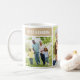 A warm and earthy photo coffee mug featuring a tan banner with Best Grandma across the top, three favorite family photos, and a We Love You message with space for grandkids' names. All text, photos, and the accent color are fully editable — a meaningful Mother's Day, birthday, or Grandparents Day keepsake.