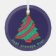 This glass christmas tree decoration features a cute tree with "best grandpa ever" written underneath. An ornament keepsake for granddad. To change the text or the image click on the personalize button. This design contains A.I.