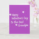 On the front of the card is a solid purple background that feels calm and cozy. In the center, the message reads, “Happy Valentine’s Day to the best Grandpa,” written in white letters that look like neat handwriting. The words are easy to read and stand out clearly against the purple. Three small white hearts add sweet detail: one sits near the start of “Happy,” another appears before “Grandpa,” and a third floats in the upper right corner. With no extra objects or scenery, the focus stays on the message and the gentle heart shapes. Calling out “Grandpa” makes it feel personal and caring, like a simple way to say he’s loved and appreciated ❤️. It’s a meaningful card to give when you want to share a little warmth across generations 🥰. Hope it helps you share Valentine’s Day with someone you care about.
