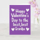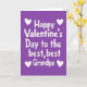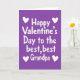 This greeting card features a deep purple background with white lettering and simple heart shapes. In the center, the text reads “Happy Valentine’s Day to the best, best Grandpa” in a slightly rounded sans‑serif style. “Happy Valentine’s Day” sits on the upper lines, and “Grandpa” appears on the lower line, all centered and easy to read. Two small white hearts sit on either side of “Happy Valentine’s Day,” and two more hearts frame the word “Grandpa” near the bottom. The strong contrast makes the message stand out right away, and the repeated “best, best” feels extra caring and sincere. It’s a sweet choice for showing your grandpa love and appreciation without needing any extra pictures. 🥰❤️