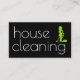 Modern house cleaning business card design with elegant typographic lettering on the front that displays a house cleaning symbol along with your business contact information. Customize the details with your own housekeeper info in style.