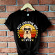 This black women’s t-shirt features a cute Labrador wearing black sunglasses with a retro vintage gradient background in orange, red, and yellow tones. A perfect gift for Labrador moms, dog lovers, and proud pet parents.