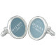 Sterling Silver plated cufflinks shown in a smokey blue and white best man print.