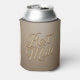 This can cooler has a solid matte light brown color. The script Best Man has a glossy, reflective quality with highlights and shadows that give it a three-dimensional appearance. The cooler is made of polyurethane foam. The cooler covers 12 ounce cans. The can cooler will help to keep your hands warm and your drinks cold. You can add a name or initials with the Personalize button. The metallic finish of the text creates a luxurious, formal aesthetic suitable for weddings or formal events.