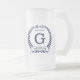 These 16 oz. frosted glass beer mugs are a great favor for the best man in your wedding. They are traditional yet modern with a blue laurel wreath and banner with the wedding date, title/job and first initial and first name all in blue. They'd be great for a bachelor party or weekend.