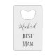 A memorable wedding keepsake for your Best Man, this bottle opener features his name written in dark grey cursive font with"Best Man" written directly underneath in bold print font. The background is white. Customize yours today!