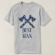 An awesome gray t-shirt for the best man lumberjack double cross ax, this shirt features "Best Man" written in blue font. There is a double cross ax with a blue and black plaid print.