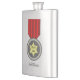 Handsome stainless steel flask, with graphics of a red ribbon with a round medal reading Best Man. Personalize the black text, to suit your needs. Great personalized gift idea for groomsmen and best man at your wedding.