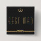 Round nautical wedding buttons - Best Man - with golden anchor and customizable text printed on black background with anchor pattern