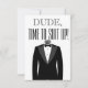 Dude Time to Suit up with tuxedo on front. Personalized with groomsman's name, message, groom's name, and a date given or the wedding date. Bow ties