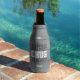 Get the wedding celebration started in style with a funny personalized groomsman proposal bottle cooler. Design features a rustic gray faux wood background, stylish modern typography names, and a customizable request reading "Will you be my groomsman? Chug to accept". All text is simple to customize or delete. These unique and original beer bottle coolers make elegant bachelor party favors from the groom to his groomsmen friends. Cheers Bro!