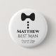 These fun buttons are designed as a gift for your best man. Perfect for identifying them at a wedding shower or rehearsal dinner. The buttons feature an image of a black tie with three buttons. The text reads "Best Man" and has a space to enter his name as well as the couple's name and wedding date.