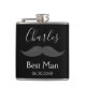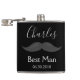 A great wedding favor flask for your Best Man with a mustache in the middle, customize his name and your wedding date underneath. Purchase yours today!