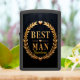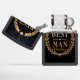 This elegant, distinguished, and celebratory design is the perfect formal gift for a Best Man, recognizing his honored role in the marriage ceremony. The central image features the bold, golden text "BEST MAN" centered within a highly detailed, majestic golden laurel wreath or crest. The wreath itself is composed of finely sculpted leaves and branches, symbolizing honor, achievement, and victory, and giving the design the look of a prestigious badge or award. Small, elegant golden heart accents and delicate divider lines are integrated into the design, emphasizing the love and commitment being celebrated. All elements are set against a deep, uniform black, subtly textured background, which makes the rich, luminous gold elements stand out dramatically. This visual powerfully symbolizes the honored position, loyalty, and cherished friendship offered by the Best Man on this momentous occasion. This lighter serves as a high-quality, personalized memento to commemorate the special day and acknowledge his support during the wedding celebration.