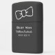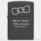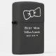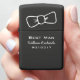 Wedding gift Zippo lighter, for your groomsmen or best man, with white graphics of a bow tie outline. Personalize the white custom text for the men in your wedding party.