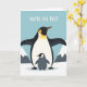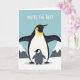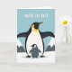 This card shows a simple icy landscape under a light blue sky, with soft snowy peaks in the background and two bird-like figures centered in the scene. A tall, mostly black figure with a white belly and a glowing golden-orange patch on its chest stands with wings stretched wide, curving like a sheltering canopy. Beneath that arch, a smaller grey companion with a faint pink blush on its cheek stands close, gazing forward with the kind of quiet trust that reads like a gentle hug ❤️. The closeness between them, and the way the larger figure leans protectively overhead, brings a tender, affectionate energy that suits romance or close friendship. At the top, the phrase “YOU’RE THE BEST” sits in large white letters, standing out clearly against the cool sky. The shapes are simplified and smooth, with solid areas of color that keep the focus on their warm connection 🌼. The smaller figure’s rounded face and rosy cheek sit just below the larger figure’s chest patch, framed by the wide wings and the pale blue backdrop.