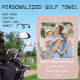 The golf towel exceeded my expectations! My husband actually approved of it! He liked the picture quality, thickness and overall usefulness of the golf towel I ordered to commemorate his lowest ever golf score. He liked it so well that I ordered 8 more towels with photos of his home golf course. Each one of the eight has the name of one of his golf group members. I will give them as party favors at my husband's 70th birthday party later this year. The different names were easy to add because the Zazzle template is so very easy to use. The colors were bright and authentic in all 9 of the towels that I made. The one of the 9 that I ordered has come out of the wash and line dry looking great.