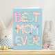Celebrate Mother's Day with this blue card featuring whimsical text that reads 'Best Mom Ever.' Include your own loving words on the inside of this card effortlessly with the text template provided.