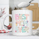 Celebrate your Mom with this cute coffee mug that features whimsical text that reads 'Best Mom Ever.'