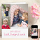 A frameworthy photo birthday card for the best mom ever - or you can edit the occasion if you wish. "best mom ever" is lettered in whimsical typography and linked with love hearts. You can also personalize with your message inside. The photo template is set up for you to add 3 of your favorite photos which are displayed in vertical portrait format. If you have any trouble with the placement of your pictures, try cropping to portrait before uploading. The design is lettered in pink but you are welcome to change the background and typography color if you wish (just click "customize further").
