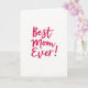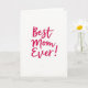 This Mother's Day card features a bright white background with the words “Best Mom Ever!” placed large and centered for instant focus. The lettering is a flowing fuchsia style with thick-and-thin strokes that feel like a warm note written with care ❤️. The phrase stretches across the middle, with “Best” and “Mom” taking up most of the space and “Ever!” tucked just below to keep the message balanced. The lively pink color brings a sweet, affectionate energy, like a close hug shared between family members. There are no characters or extra scenery, which keeps the attention on the message and lets the color do the talking. An exclamation mark at the end adds a little extra cheer, like a happy voice finishing the line 🌼. The only elements on the front are the centered fuchsia words on a plain white field.