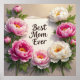Best Mom Ever”Hand-painted peonies and cursive Poster