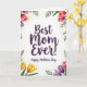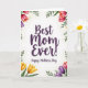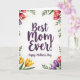 This greeting card features a cream background with a gentle texture, centered around the large phrase “Best Mom Ever!” in deep violet lettering that feels affectionate and proud ❤️. Just beneath it, “Happy Mother’s Day” appears in smaller, flowing purple text, aligned neatly under the main line for a soft, caring rhythm. A floral frame wraps around the words, like a bouquet arranged to draw your eyes back to the message. In the corners, tulip-like blooms open in soft pink, orange, yellow, and deep purple, giving the scene a friendly, close-to-the-heart warmth 🌼. Slender green leaves weave between the flowers, suggesting a tender, gathered-from-the-garden look. Tiny white blossoms dot the border, adding a quiet touch that feels like a gentle nod of appreciation. The flowers and leaves form a loose rectangular wreath around the text, with the brightest petals clustered near the corners and lighter space left around the center.