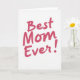 This greeting card features the phrase “Best Mom Ever!” centered on a bright white background, with the letters painted in deep fuchsia for an eye-catching, affectionate look ❤️. The brushy lettering has varied thickness and textured edges, like a note made with care for someone you’re close to. The words sit prominently in the middle of the front, leaving generous white space around them so the message feels open and direct. Each letter has slightly uneven strokes that add a tender, human touch, as if the writer paused and smiled while forming the lines. The overall layout is simple and romantic in its own way, like a warm compliment shared between family members or dear friends. The color stays consistent across the phrase, keeping the focus on the message rather than extra decoration 🌼. A matching fuchsia exclamation mark follows the final word, with a thicker downstroke and a tapered end.
