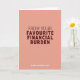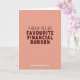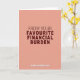 This card features a soft coral-peach background that feels cozy and inviting, like a warm room at the end of the day ❤️. Centered in the middle is a large, heavy-looking message in deep russet lettering, set to grab attention without feeling harsh. The main line reads like affectionate teasing, the kind of gentle ribbing that comes from knowing someone well and caring about them. A faint shadow behind the russet letters adds a touch of depth while keeping the look simple. Near the bottom edge, a smaller line of text appears in bright white, neatly spaced and easy to read, like a quiet, sincere follow-up. The contrast between the big russet words and the smaller white line creates a sweet push-and-pull, like a friendly wink followed by a soft squeeze of the hand 🌼. The layout stays uncluttered, with generous open space around the centered text and the bottom line sitting close to the lower margin.