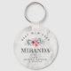 Personalized Best Mom Ever elegant pink floral watercolour minimalist key ring with marble background. Great for Mother's Day gift.