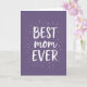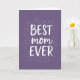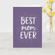 This card features a deep purple background that feels calm and affectionate, like a quiet hug ❤️. Centered on the front is a three-line message reading “BEST” on top, “mom” in the middle, and “EVER” on the bottom. “BEST” and “EVER” appear in chunky, slightly irregular white lettering, while “mom” is written in a smooth, flowing white cursive that softens the look. The text sits neatly in the middle, with plenty of space around it so the words feel like they’re being gently presented. Around the message, tiny lavender dots and delicate snowflake-like shapes drift like confetti, giving the design a tender, celebratory feel 🌼. Some of these little accents are bright white and others are a lighter, sparkling violet, adding depth without crowding the center. The overall palette stays within purples and whites, with the decorations framing the words in a loose oval. Small round lavender dots mingle with crisp white and pale violet starburst shapes across the purple field.