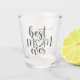 Shot glass features the words "Best Mom Ever" in a beautiful scripted font with heart detail. Font color is fully customizable when using the editing tool.