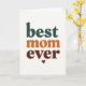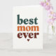 This card features a simple, centered message that reads “best mom ever” stacked in three lines on a soft creamy off‑white background. The rounded, friendly lettering feels like a warm hug, with the words arranged vertically to draw the eye down in a calm, steady rhythm. “Best” appears at the top in deep forest green, adding a grounded, nature‑touched tone. “Mom” sits in the middle in a warm burnt orange, giving the layout a cozy glow that suggests an affectionate bond ❤️. “Ever” rests on the bottom in rich chocolate brown, bringing a steady, lasting feel to the design. The text is centered with generous spacing around it, letting the colors and shapes speak quietly without crowding the page. Directly beneath “ever,” a tiny heart icon in matching chocolate brown sits neatly in the center 🌼.