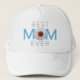Best Mom Ever With Daisy Image Print Trucker Hat (blue version 2). The cute design shows "MOM" with a stylized image of a daisy positioned as the "O". Graphic leaves are overlaid on the two "M"s. The "Love Always" copy can be changed to your desired preference. Makes the perfect gift for your much loved mama for Mother's Day, for her birthday, or for Christmas. Thank you for the support and visiting my store - UniquelyDistinct. Feel free to transfer this design on other Zazzle products.