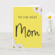 This design shows a sunny yellow background that feels like a warm hug, setting a cheerful scene for a close family bond ❤️. Centered on the front, the words “TO THE BEST” sit above the larger word “Mom,” creating a gentle emphasis that feels like someone leaning in to speak softly. “TO THE BEST” appears in simple, neat lettering, while “Mom” is written in a flowing, cursive-style look that adds a tender, affectionate touch. The text is set in a dark tone that stands out clearly against the yellow, keeping the message easy to read. Small floral details frame the greeting, with one cluster near the upper right corner and another near the lower left, like quiet little gifts placed around the words 🌼. Each flower has white petals with a golden center, and the petals are shaded to look slightly layered and softly curled. The two corner arrangements mirror each other to guide your eyes back toward the center message, and the blossoms sit lightly on the yellow field with plenty of open space around them. The white-petaled flowers with golden centers sit at the upper right and lower left corners against the bright yellow backdrop.