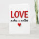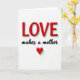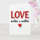 This card shows the words “LOVE makes a mother” on a simple white background, and it feels calm and heartfelt ❤️. The word “LOVE” sits at the top in large, all-caps letters that look like glossy deep red shapes with rounded edges. Each letter has a soft shadow, so it comes across like raised lettering rather than flat print. Underneath, “makes a mother” appears in smaller, thin black cursive-style writing centered beneath “LOVE.” A small red heart sits below the line of text in the middle, matching the red of the big word above and also looking slightly raised. The open space around everything keeps your focus on the message and makes it feel sincere. It’s a meaningful card to give when you want to thank someone for the care and love they’ve shown, whether it’s a mom, a mother figure, or someone you admire 🥰.