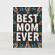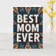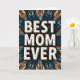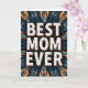 Designed with a large, centered message reading “BEST MOM EVER” in uppercase white letters, this card makes the words the main focus right away. Each letter is dotted with small blue and orange spots, giving the message a sweet, affectionate energy ❤️. A thick orange edge and a darker shadow around the text create a lifted look, as if the words are gently hovering above the background. Behind the message sits a radial, symmetrical pattern of flowing shapes that feel like petals or flame-like leaves reaching outward, as if offering a warm embrace. Deep indigo and rich teal fill most of the backdrop, while warm orange and bright aqua accents flicker through the design like little bursts of attention and care 🌼. The strong contrast between the white text and the darker field makes the message easy to read, with the orange outline tying neatly into the orange highlights around it. The background forms curl and fan outward from the center in layered indigo, teal, orange, and aqua strokes.
