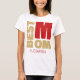 Celebrating your mom isn't just for Mother's Day. There are plenty of opportunities to express your love to her throughout the year. So, here is a "Best Mom" design in red and gold glitter colors for a white women's t-shirt. We used a massive modern typeface for this text, placed "BEST" vertically, and used a big red "M" for mom. You will find a customizable name at the bottom written in a trendy dotted red typeface. Please, replace the default name according to your needs, or feel free to delete it.