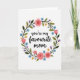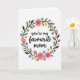 Designed with a circular floral wreath that frames the message “you’re my favourite mom” at the center. Soft pink roses and pink tulips lean inward as if sharing a gentle, affectionate moment, while small blue five-petal flowers add a friendly sparkle ❤️. Tiny lavender bell-shaped blooms and little yellow accents fill the gaps, giving the ring a cozy, cared-for look 🌼. Deep green leaves in varied shades and a few slender darker stems weave through the flowers to keep the arrangement feeling natural and balanced. The background stays light and airy, letting the wreath feel like it’s floating in a calm, sunlit space. The text sits centered inside the circle in black, flowing lettering that stands out clearly against the pale interior. Each petal and leaf has a soft, watercolor-like texture with slightly uneven edges that feels tender and intimate. The wreath forms a complete loop around the words, with the largest pink rose near the upper left and clusters of blue blossoms scattered around the sides.