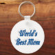 Key chain with World's best Mom in 3D sea blue text. Round and square key chains available in several sizes.
