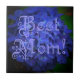This "Best Mom" is in fancy text with the glow of nighttime with a group of beautiful blue flowers.