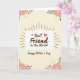 This card features a white rectangular panel in the center with the words “Best Friend in the World” written in earthy brown lettering, flanked by two small pink hearts ❤️. Thin dark-brown lines spread outward behind the panel like a soft halo, giving the message a gentle, affectionate focus. In each corner, rounded pink flowers with white centers and tiny dot details sit on slender brown stems and leaves, as if they’re leaning in toward the middle like close friends. The background is a creamy beige that keeps the scene calm and cozy, letting the browns and pinks feel warm and intimate. Beneath the main panel, “Happy Mother’s Day” appears in the same brown lettering, centered and easy to spot. The overall palette stays soft—beige, blush pink, and deep brown—creating a quiet closeness, like a tender note shared over tea 🌼. The flowers show soft pink petals with bright white centers, connected by fine brown lines that curl gently toward the corners.