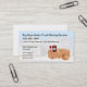 Moving and storage service business cards in a unique design with house image lightly printed as a background behind your business information and image of storage boxes with household items waiting to be packed and moved to a new home. Best business cards for a residential moving and storage service that does local or long distance.