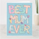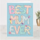 Celebrate Mother's Day with this blue card featuring whimsical text that reads 'Best Mum Ever.' Include your own loving words on the inside of this card effortlessly with the text template provided.