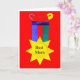 A Mother's Day Card with a 'Best Mum' medal, attached by a safety pin, made from handpainted paper collage. Blank inside for your own message. See also matching T-shirts, aprons, hats and mug.